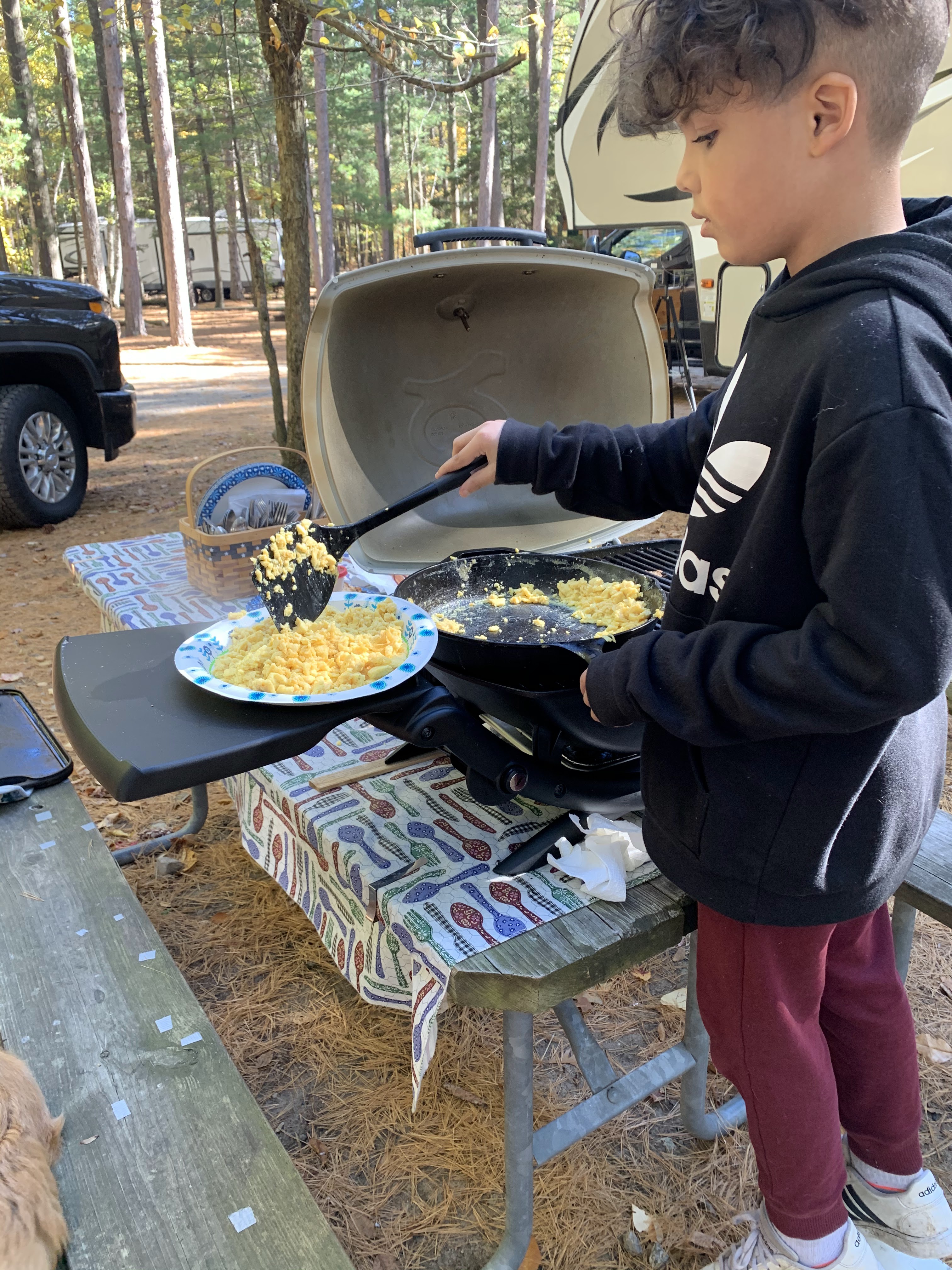 | "Chef" Mason helping prepare scrambled eggs. |