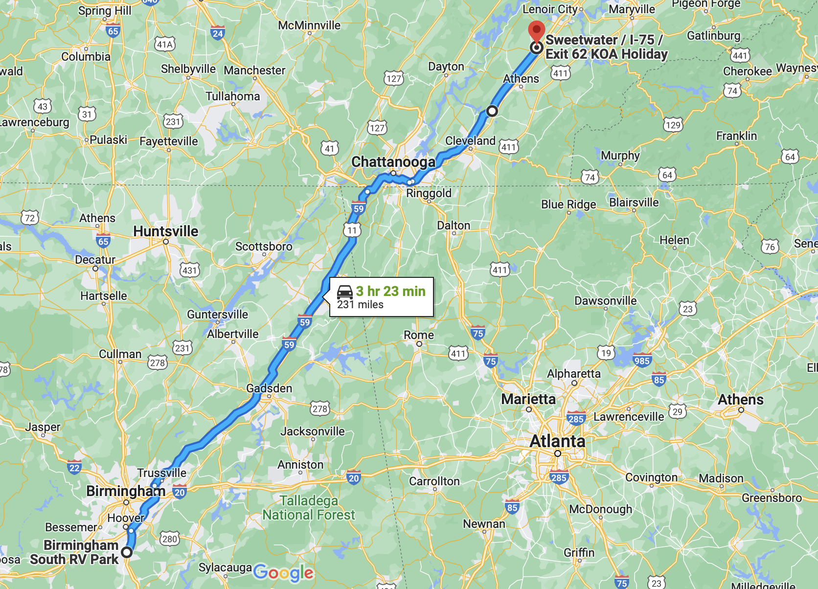 We were on the road at 9:45 this morning. We took US 89 almost all the way today. We thought we would avoid the Interstate for a change and since we gained an hour on the clock by driving into the Central Time Zone, we were not in a rush. That said, I would not do that again pulling a large camper. On the plus side, the drive was not stressful, basically because we never able to exceed 45 miles per hour. West from Panama City to Gulf Shores is almost one continuous city. Lots and lots of traffic, stop lights, road, developments and condo construction. On the down side, our mileage suffered because of the constant stop and go. And the drive was tedious and took over an hour longer, even though it was 50 miles shorter than using I-10. All in all, I'm glad we drove it and got to see new places, but once is enough, especially pulling a 35 foot RV.